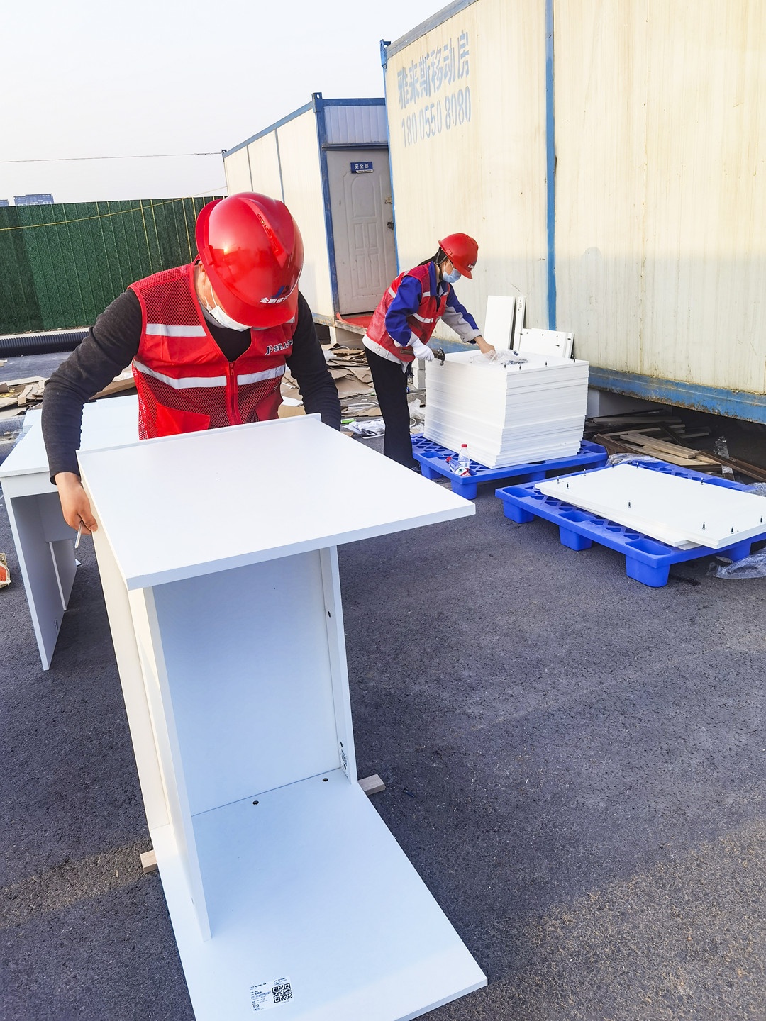 在接到任务当天完成设计、拆单、生产计划。4月3日第一批300组隔离间的配套家具生产完成并送到现场进行安装;4月4日500组隔离间配套家具已全部生产完成;4月5日剩余200组隔离间的配套家具全部送达现场。截至4月5日晚已完成安装350组隔离间的配套家具。任务在持续,金鹏上尚家居的“战斗”一直在继续......