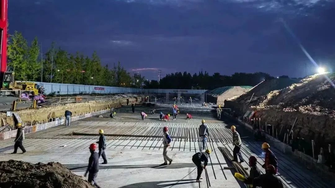面对诸多困难,项目部采取24小时流水作业,多个施工班组进行2班倒,歇人不歇机工作机制,高峰期时投入工人近300人、8台吊车同时作业,全力推动项目建设跑出“加速度”。