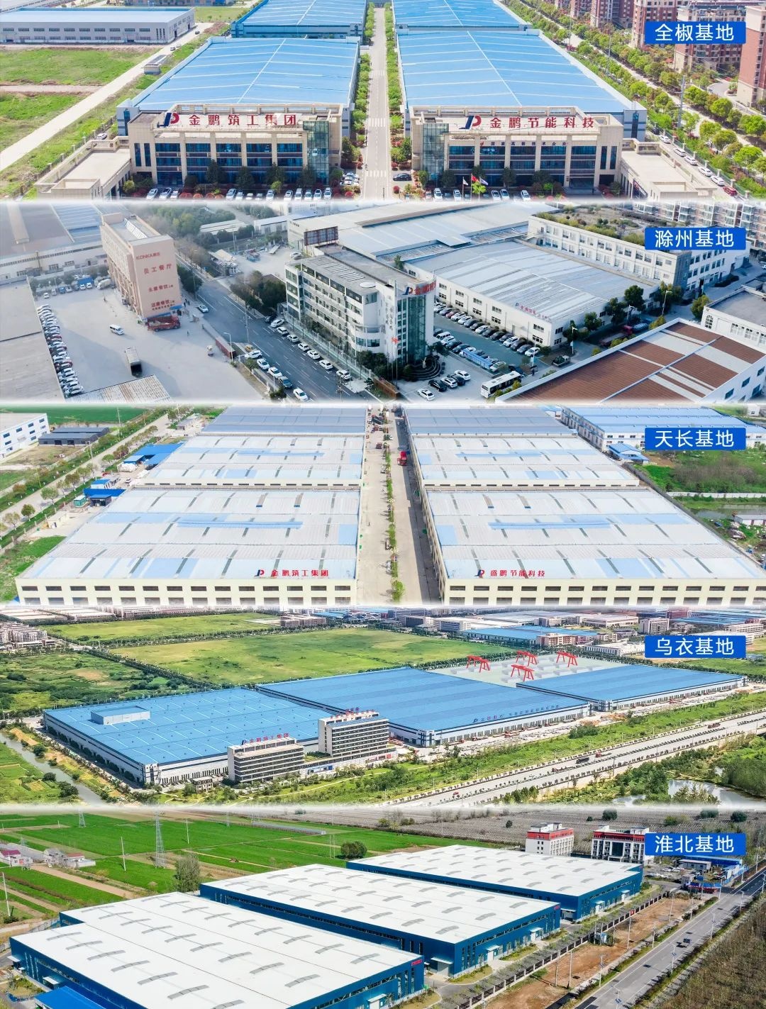 目前,金鹏阳光共拥有5大生产基地(安徽全椒基地、安徽滁州基地、安徽天长基地、安徽淮北基地、安徽乌衣基地),总建筑面积超40万m2,以智能制造和精益化生产严格控制品质,年产量超300万m2,成为了华东地区最具规模的门窗生产基地。