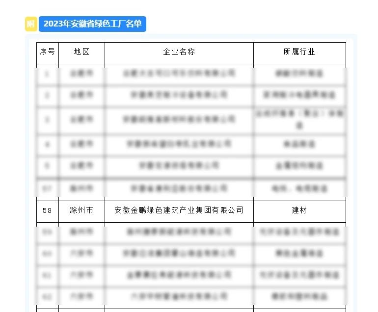 为了贯彻落实《“十四五”工业绿色发展规划》,安徽省工业和信息化厅旨在打造一批绿色产业先进典型,发挥以点带面的作用,引领产业绿色转型升级。金鹏绿建集团(金鹏装配式建筑)凭借在绿色发展领域的突出表现,获评2023年省级“绿色工厂”称号。