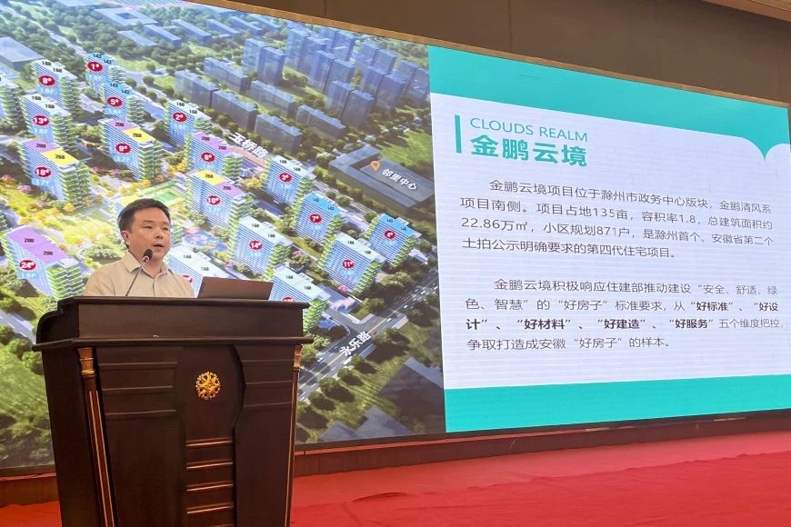 推介会上,金鹏产业研究院院长廖智强分享了“金鹏5H好房”标杆案例-云境项目,从“好标准”“好设计”“好材料”“好建造”“好服务”五个维度,展现了金鹏打造“好房子”的全生命周期技术服务体系及实施路径。金鹏·云境实景廖智强院长表示,金鹏30余年来,在建筑领域深耕发展,形成了极具核心竞争力的上下游全产业链优势。金鹏努力打造安徽“好房子”样本,正在完善企业标准,积极参编国标图集、安徽省行业标准等。金鹏·云境-云栖空中花园创新打造的第四代住宅云境项目,集“美学家、绿色家、安全家、智慧家、舒适家”为一体,从规划设计、建筑设计、装饰设计、门窗幕墙设计、装配式设计、BIM设计、室外配套基础设施设计、园林环境设计、智慧整装设计等各方面,引领“好房子”建设。金鹏·云境架空层及下沉庭院建造过程中,云境项目甄选品质材料,配套金鹏高品质门窗,依托金鹏数字化工厂和施工驾驶舱,在全国率先运用“工业互联网+智能建造+金鹏5H好房”,采用金鹏新型装配式高层住宅建造体系,实现项目“品质好、工期优、成本低”。金鹏·云境网球中心金鹏·云境幻影车库同时,基于十余年物业场景运营能力,金鹏为好房子配套5H好服务品牌-至臻服务,让业主享受更有品质、更有价值的美好生活,助力国家推进“好房子、好小区、好社区、好城区”建设。