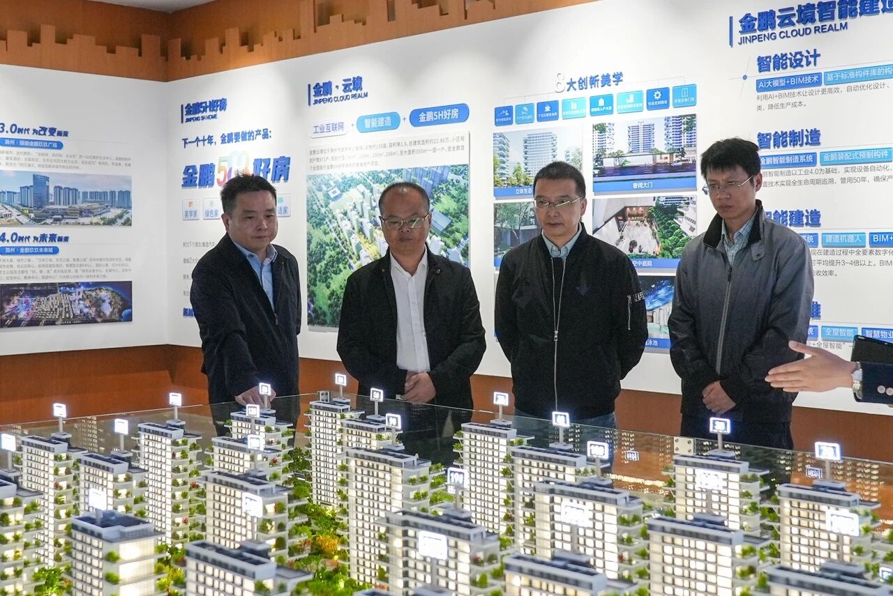 湖南工学院专家学者一行先后参观调研了金鹏总部品牌文化展厅,滁州首个第四代住宅金鹏·云境,金鹏国家装配式建筑产业基地及三期厂房等,对金鹏智能建造全产业链发展及新型装配式建造体系给予高度认可。