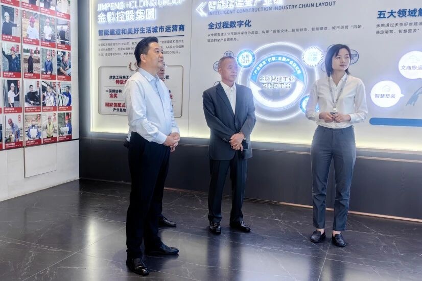 陪同过程中,金鹏控股集团董事长孙元武向中行领导展示了金鹏智能建造、好房子建设、装配式建筑、门窗家居以及运营服务等各个产业的发展情况,详细介绍了云境项目在空中花园创新设计、高品质门窗应用、全屋智能组合空间、五恒健康系统、高端地库工艺工法、至臻物业服务等贯穿项目全生命周期的创新突破。